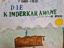 Die Klasse 5b hat sich in den letzten Wochen im Deutschunterricht ausführlich mit An Rutgers Roman „Die Kinderkarawane“ beschäftigt. Dieser auf einer wahren Geschichte basierende Roman erzählt auf spannende und emotionale Weise von den sieben Sager-Kindern, die 1844 allein durch den wilden Nordwesten Amerikas gezogen sind.